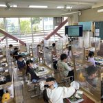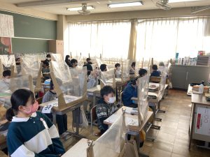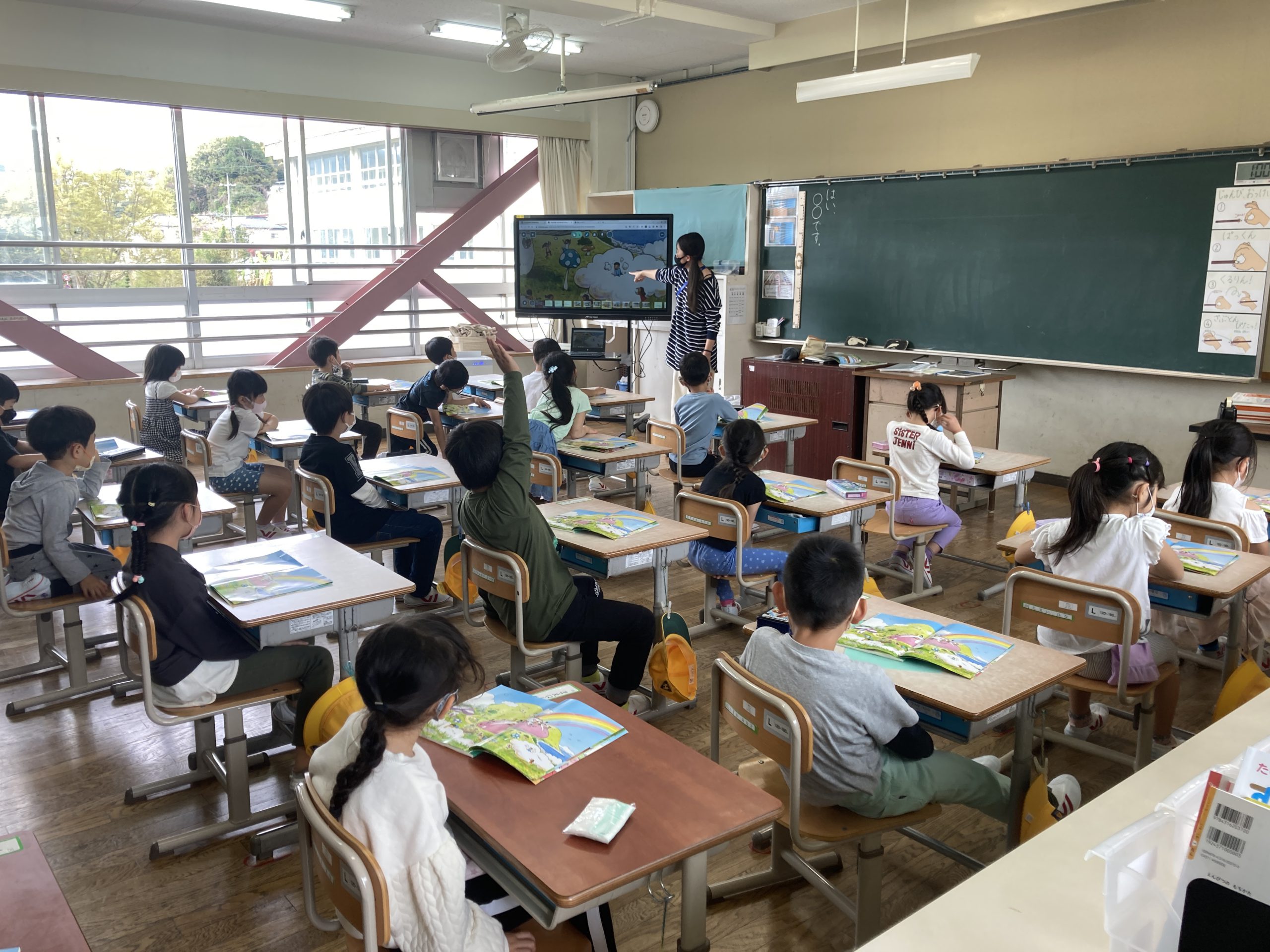 1年生も少しずつ授業を始めています。25名の子どもたちが先生の話を聞いて、教科書を見て意見を出す。発言する時のルールなどを教えてもらいながら、学習を進めています。今日は1時間目の途中に廊下から見させてもらいました。みんなとてもよく話を聞くことができていました。