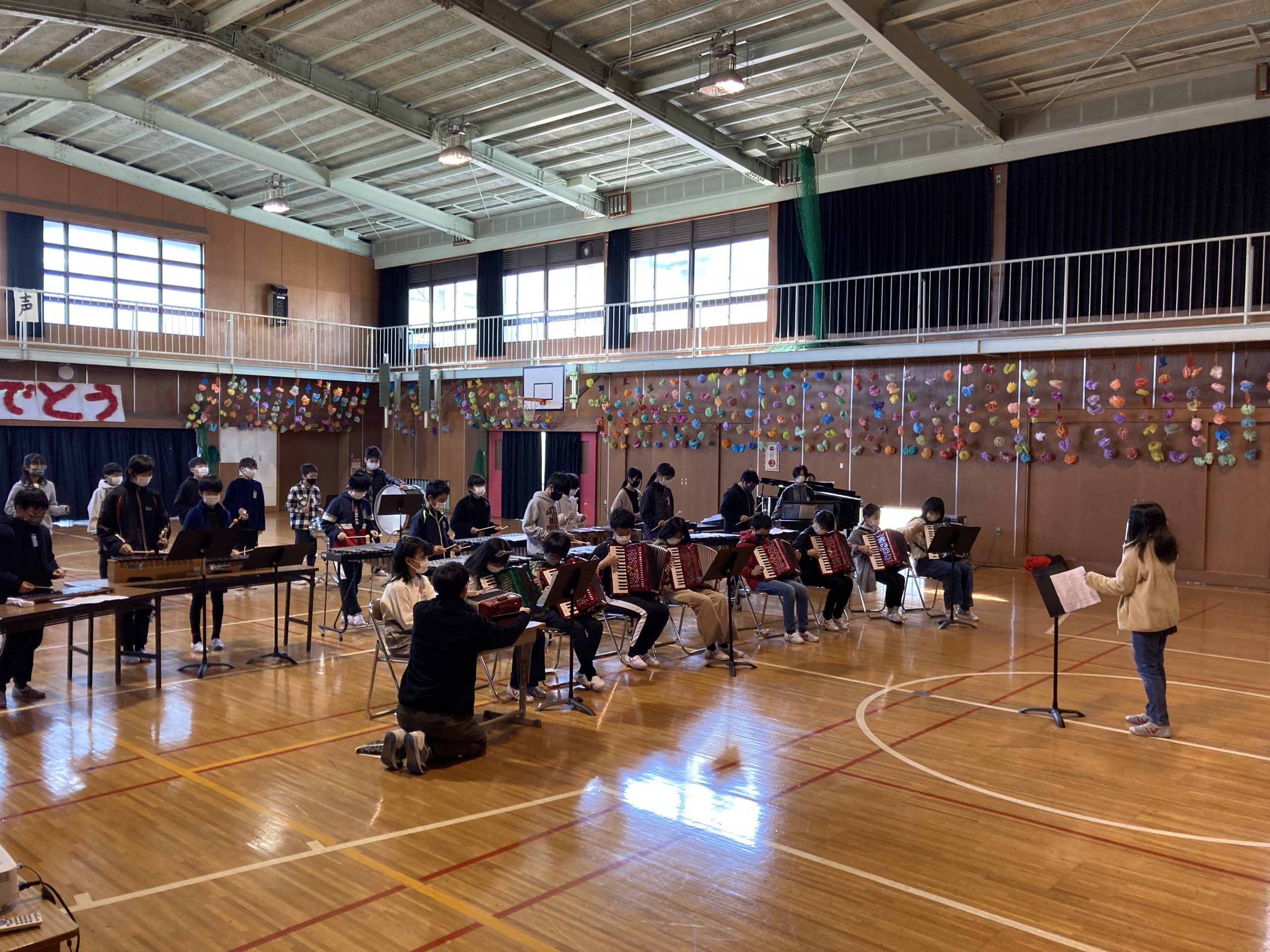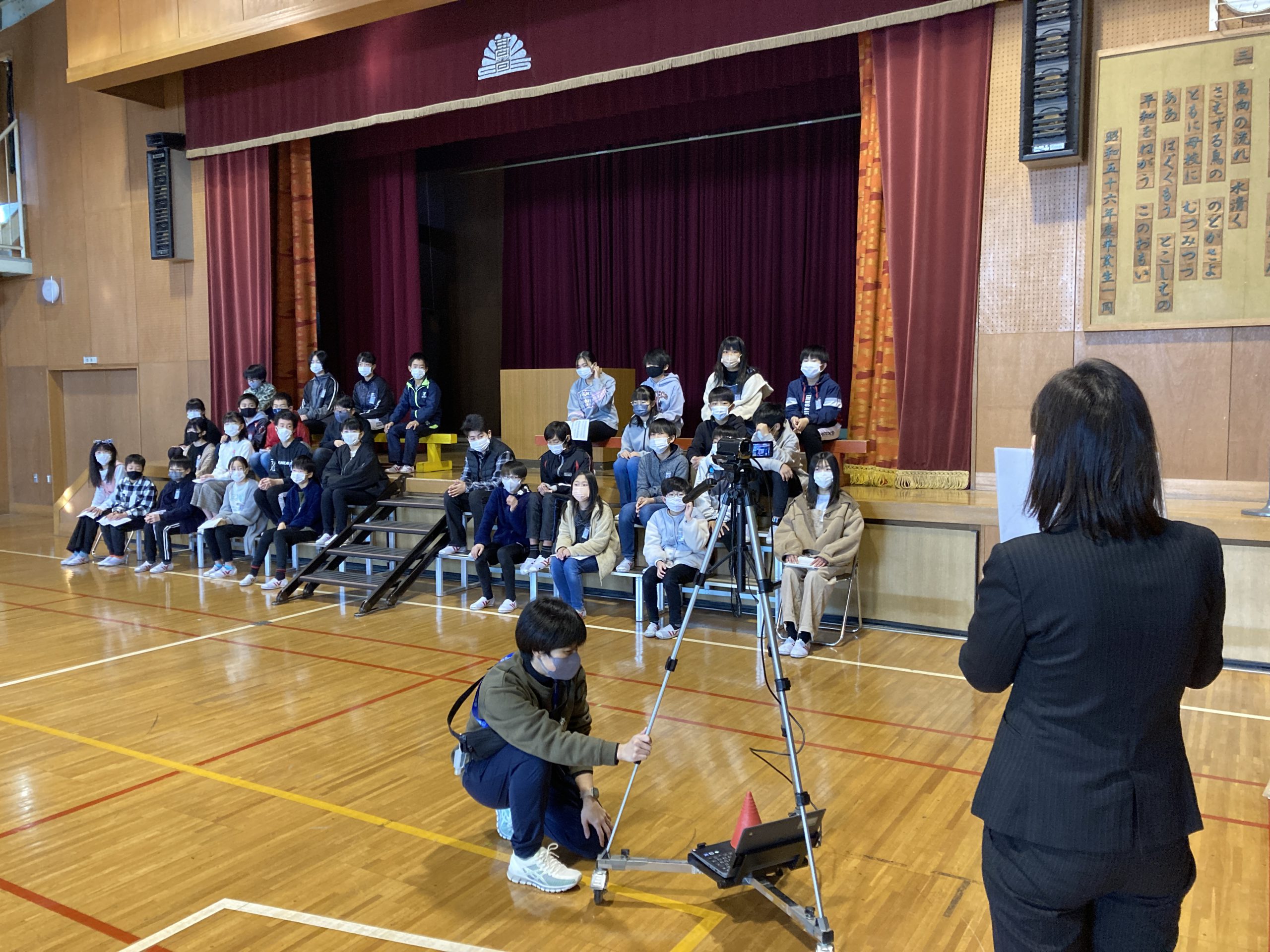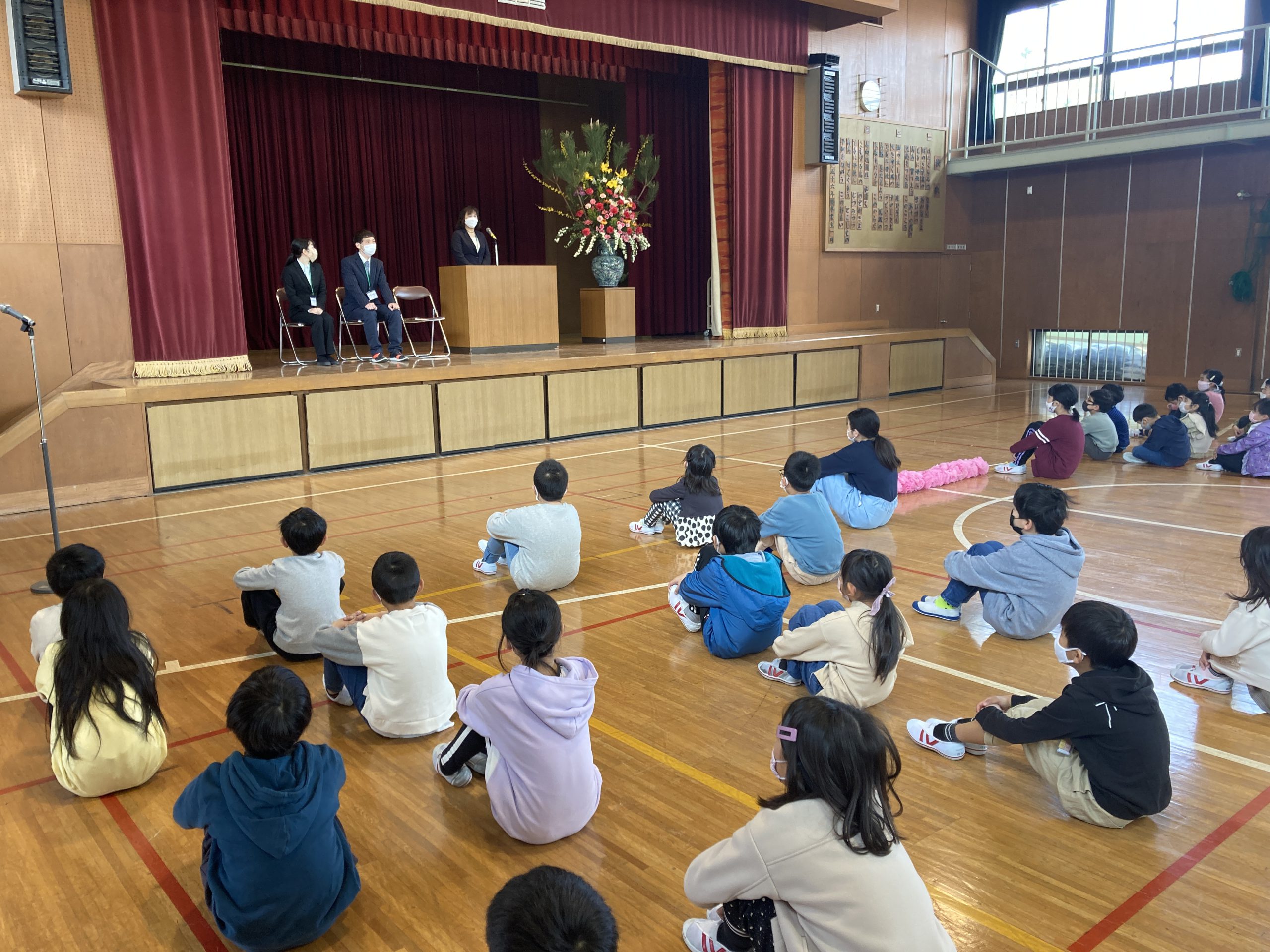 3月に高向小学校を離任された先生方とのお別れの式を行いました。少ない人数の学校なので、子どもたちと先生とのつながりも強く、式の後、職員室に子どもたちが直接話をしようと来てくれていました。