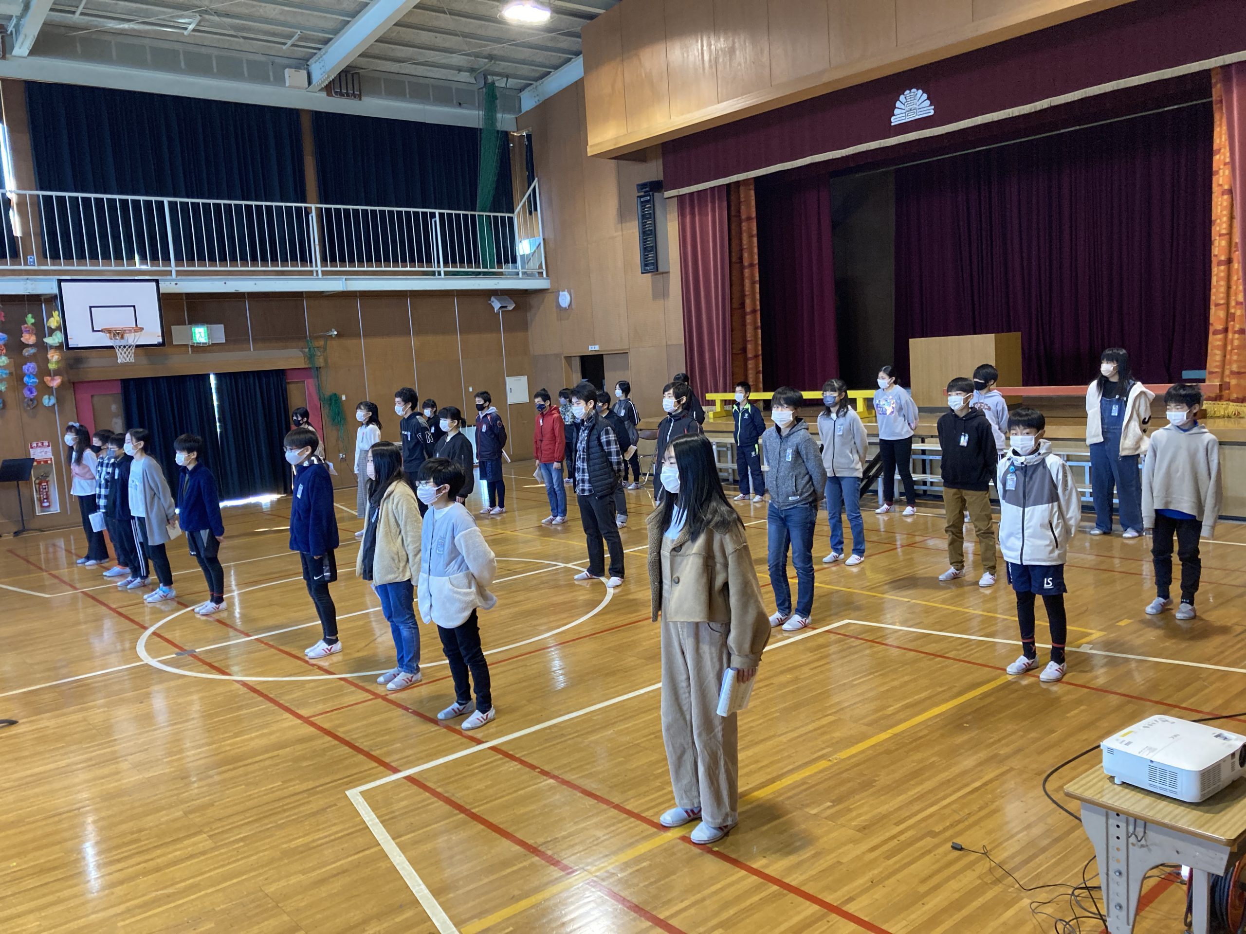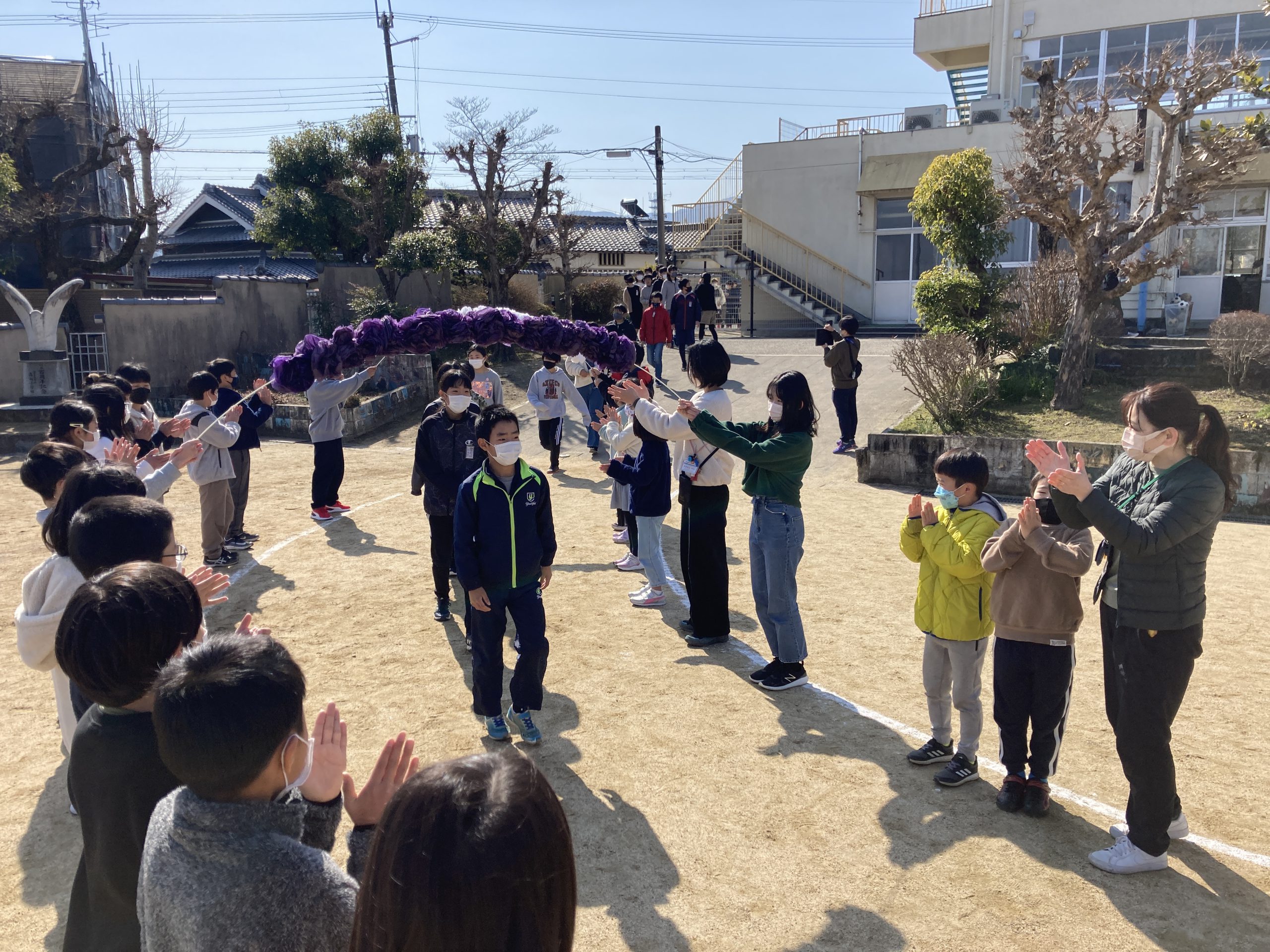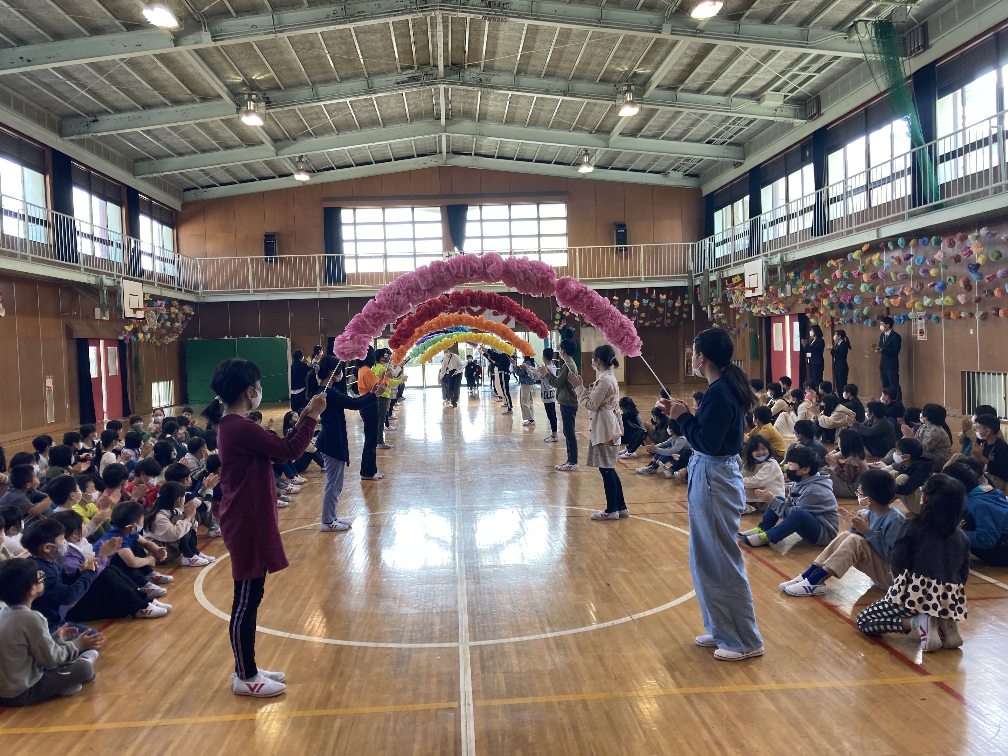 毎年行っているお別れ集会。昨年は全てリモートで行いましたが、今年は少しバージョンアップ。感染拡大の影響は昨年よりは大きかったのですが、そこは知恵を振り絞り、昨年よりも子どもたちにとって思い出深い行事にしようとリモートとリアルを融合し開催しました。各学年入れ替わりを繰り返しましたが、最後は運動場で全員が揃って終えることができました。6年生はこの後、卒業式に向けて練習に取り組みます。頑張ってください。