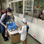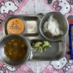 今日は1年生が初めての給食にチャレンジしました。メニューは子どもたちに大人気のカレーライス。給食当番もお兄さん、お姉さんと同じように務めます。果たして無事食べることができたのでしょうか?