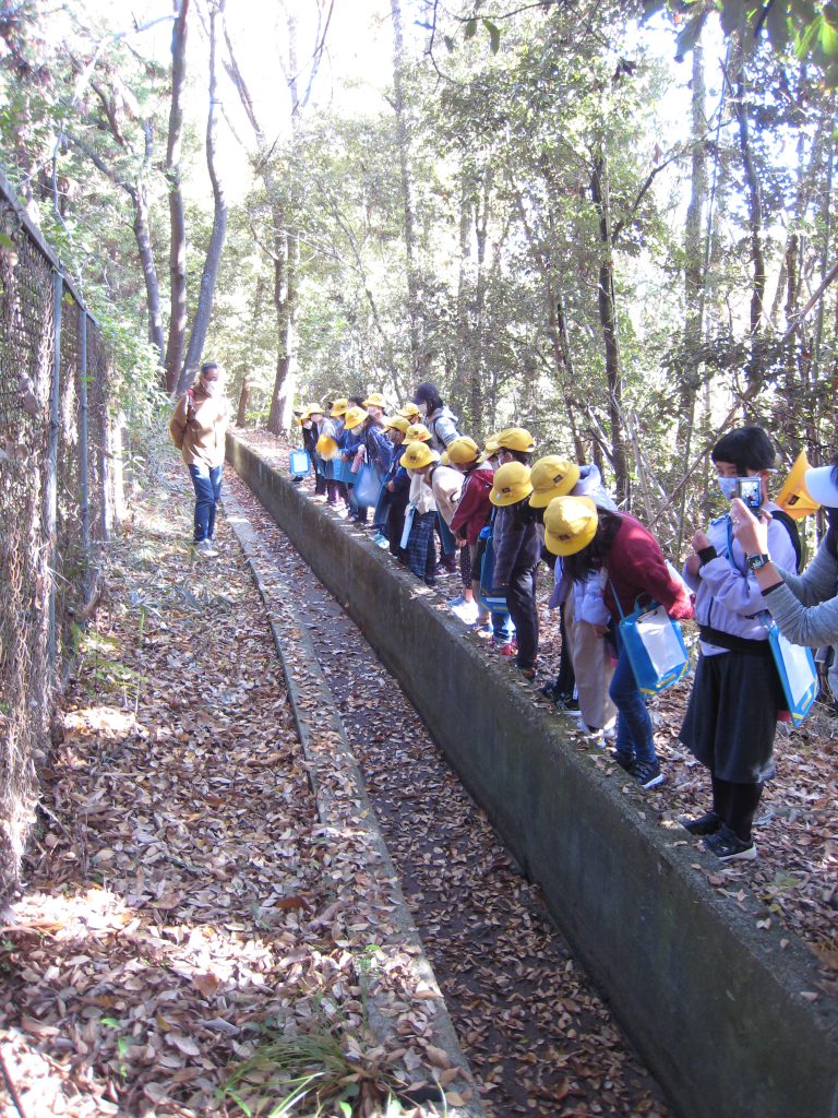 4年生の社会科で学習する「地域の発展に尽くした人々」の舞台となる寺ヶ池に見学に行ってきました。滝畑ダムからの用水路を見学しながら、寺ヶ池に到着。自然の地形を生かしたため池ながら約370年前にこれほどの大工事を行ったことに改めて感動しました。実際に用水路を歩き、大きな寺ヶ池を見ることで、これから学習する内容に実感が伴うのではないでしょうか。