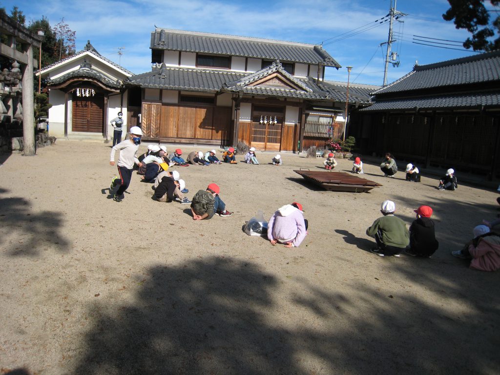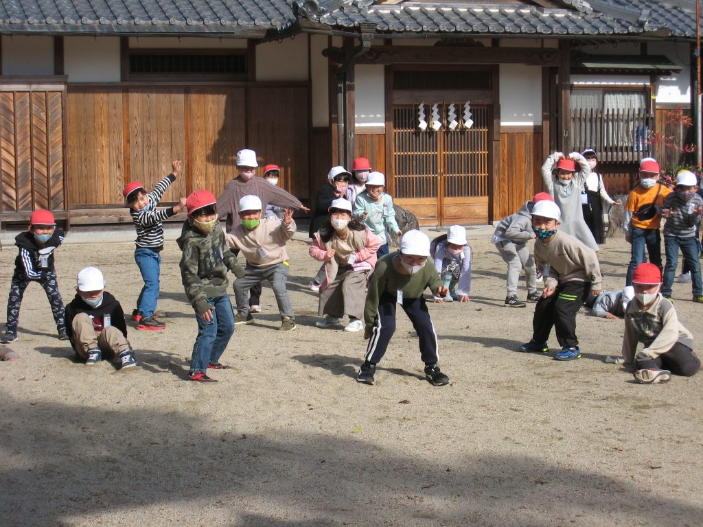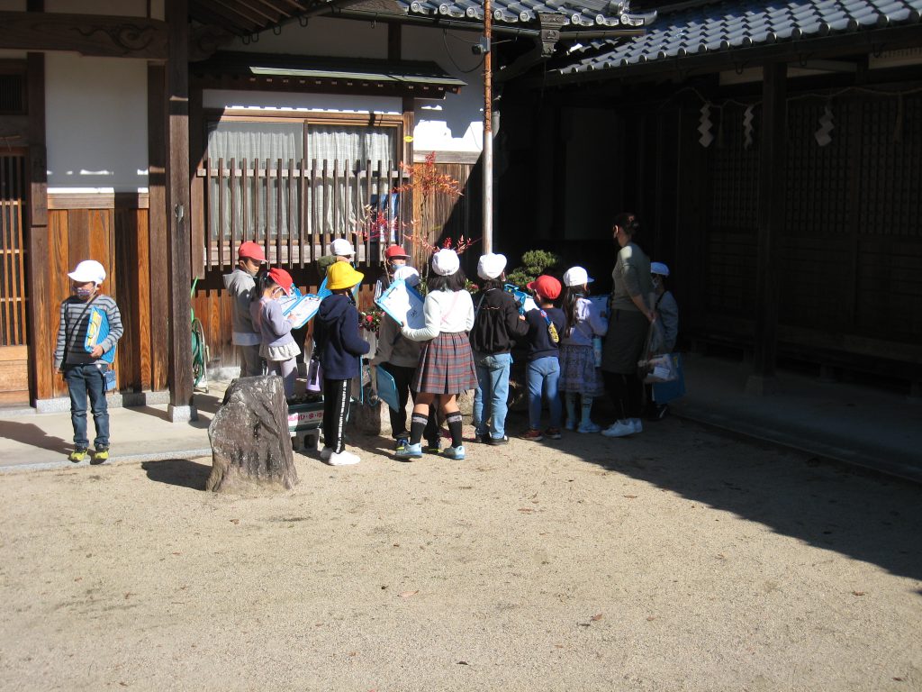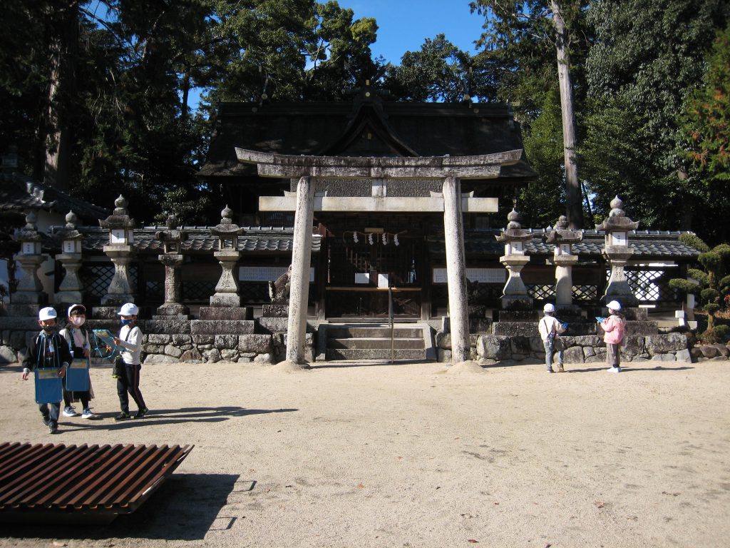 学校からほど近い高向神社に行ってきました。グループで協力して高向神社のヒミツを探しました。綺麗なもの、カサカサ音がするものなど。1年生の視点で様々なものを見つけることができました。探検の後は境内でみんな遊び。子どもたちの元気な声が響き渡りました。