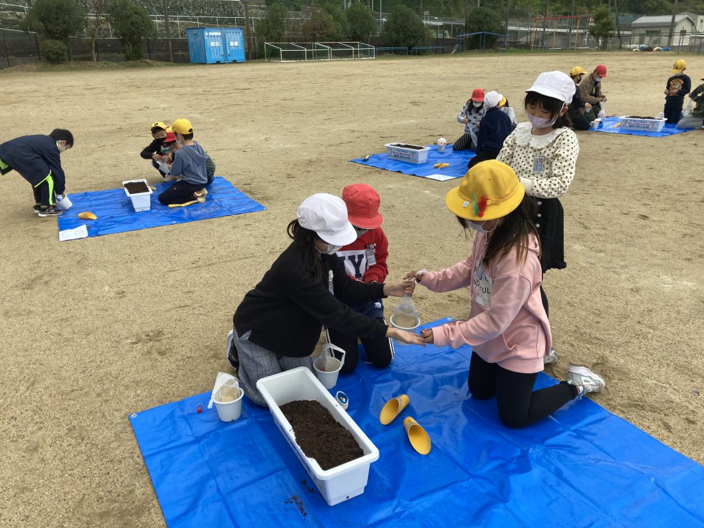 先月の人権の出前授業を受けて、チューリップの球根をみんなで植えました。これから花を協力して育てることを通じて、協力、感謝することの大切さを学び、より豊かな人権感覚を身につけてもらえたらと思います。