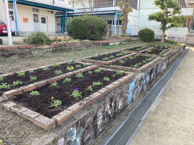 今日は花ボランティアの活動日でした。先週から少しずつ、花壇の整備をしてくださり、花の苗を植えてくださいました。これから寒い季節になり、外の天気も曇りがちになりますが、今日植えてくださった花できっと明るい運動場になるだろうなあと思っています。花ボラさん、ありがとうございました!