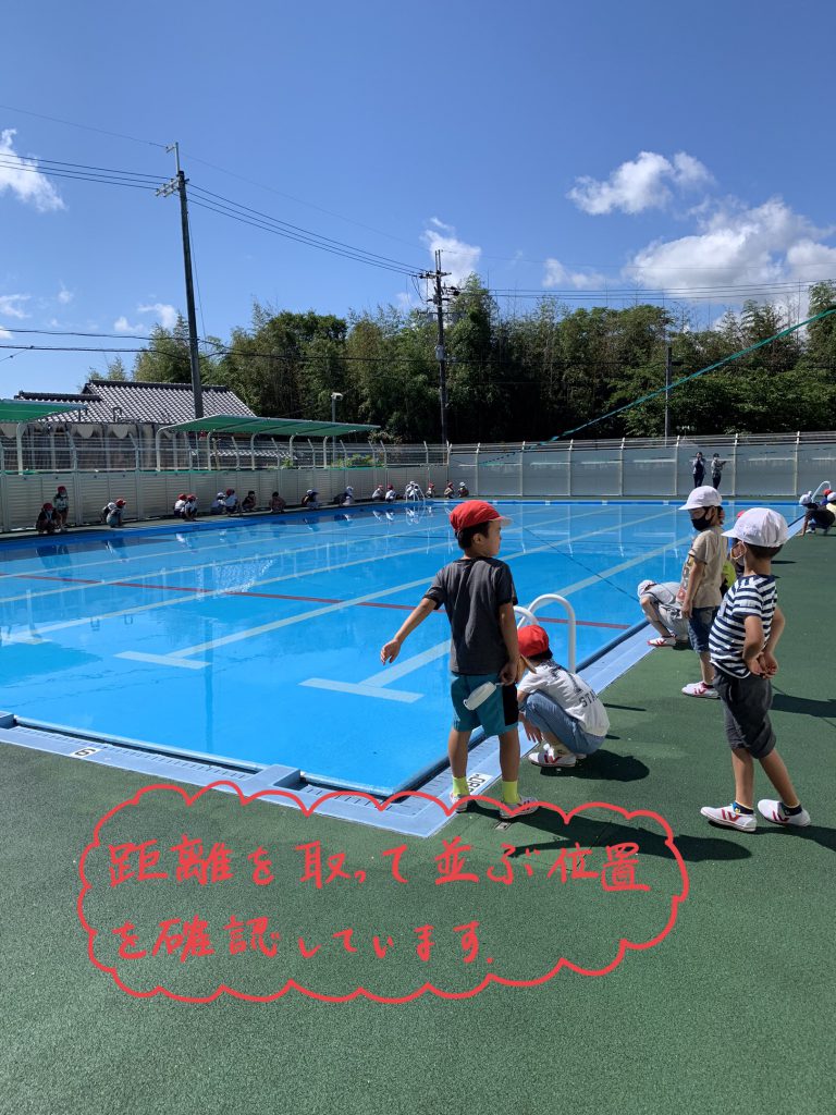 いよいよ来週から水泳学習が始まります。12年生にとっては初めての小学校での水泳学習。保育園、幼稚園とは違って大きさ、深さが大きく違います。今日は新型コロナ感染対策で並び方が例年とは違うのでプールの下見をしました。12年生のみなさんは少しはイメージができたかな?