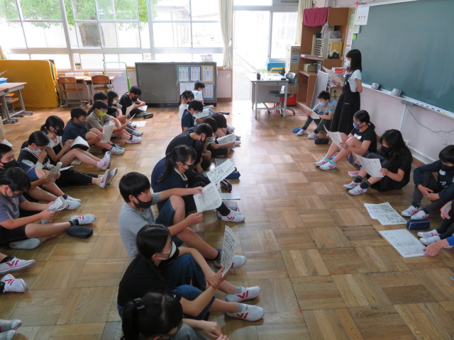 今日は5年生の音読朝会でした。多目的室で行ったため、一番近くの3年生が廊下で直接見学をしました。6年生の感想で「機械越しとは思えない迫力のある声だった」というように素晴らしい発表でした。