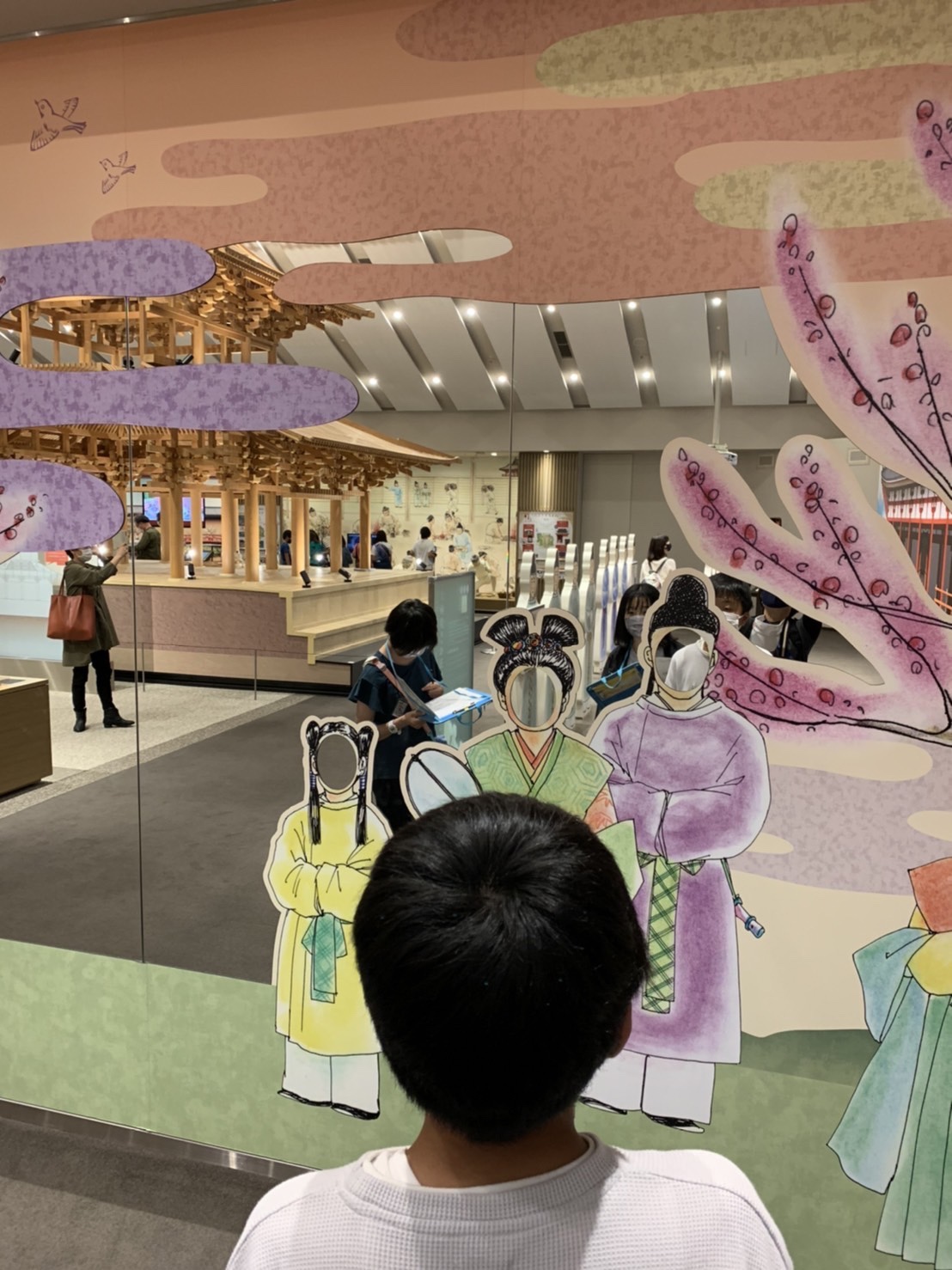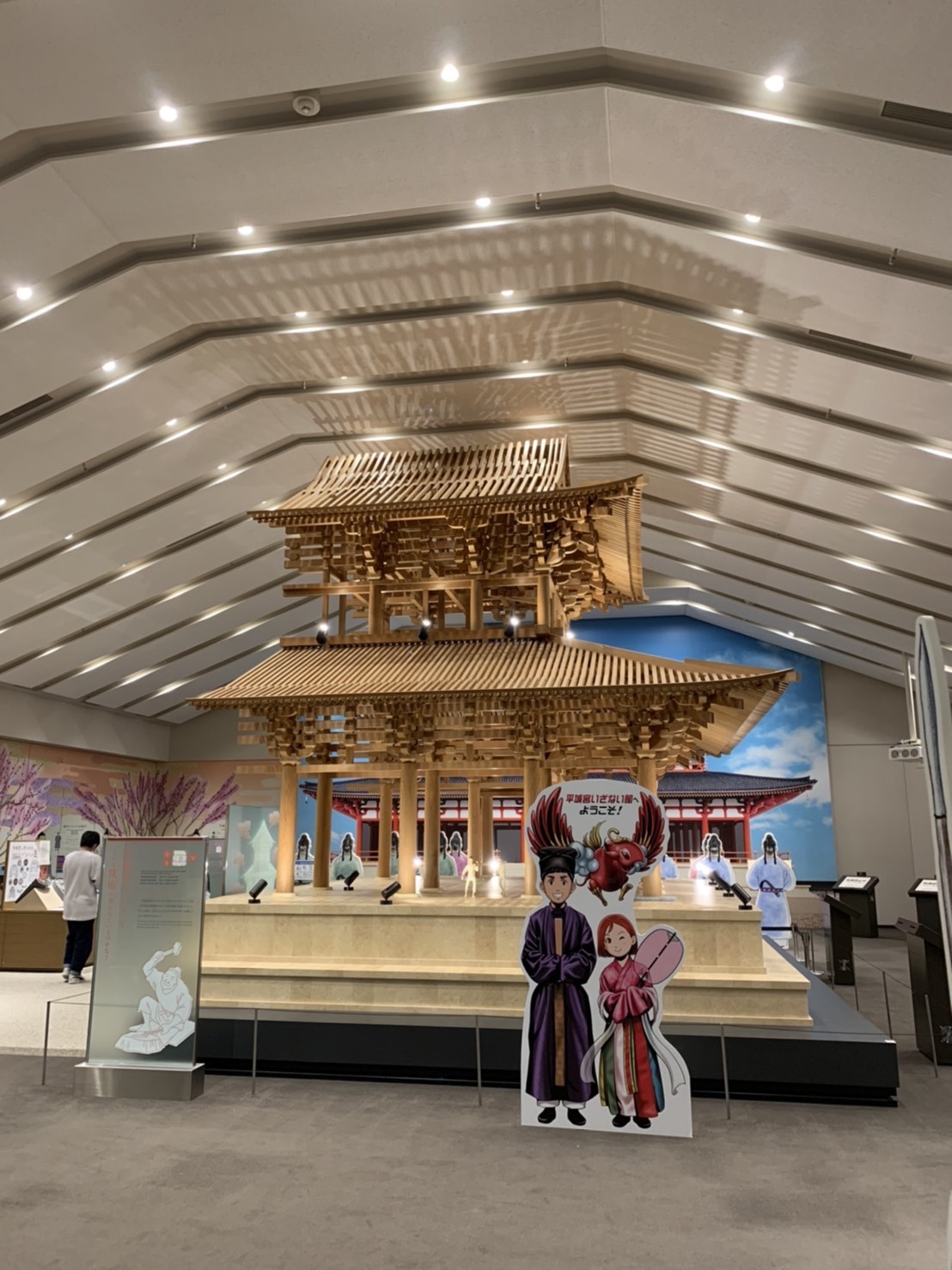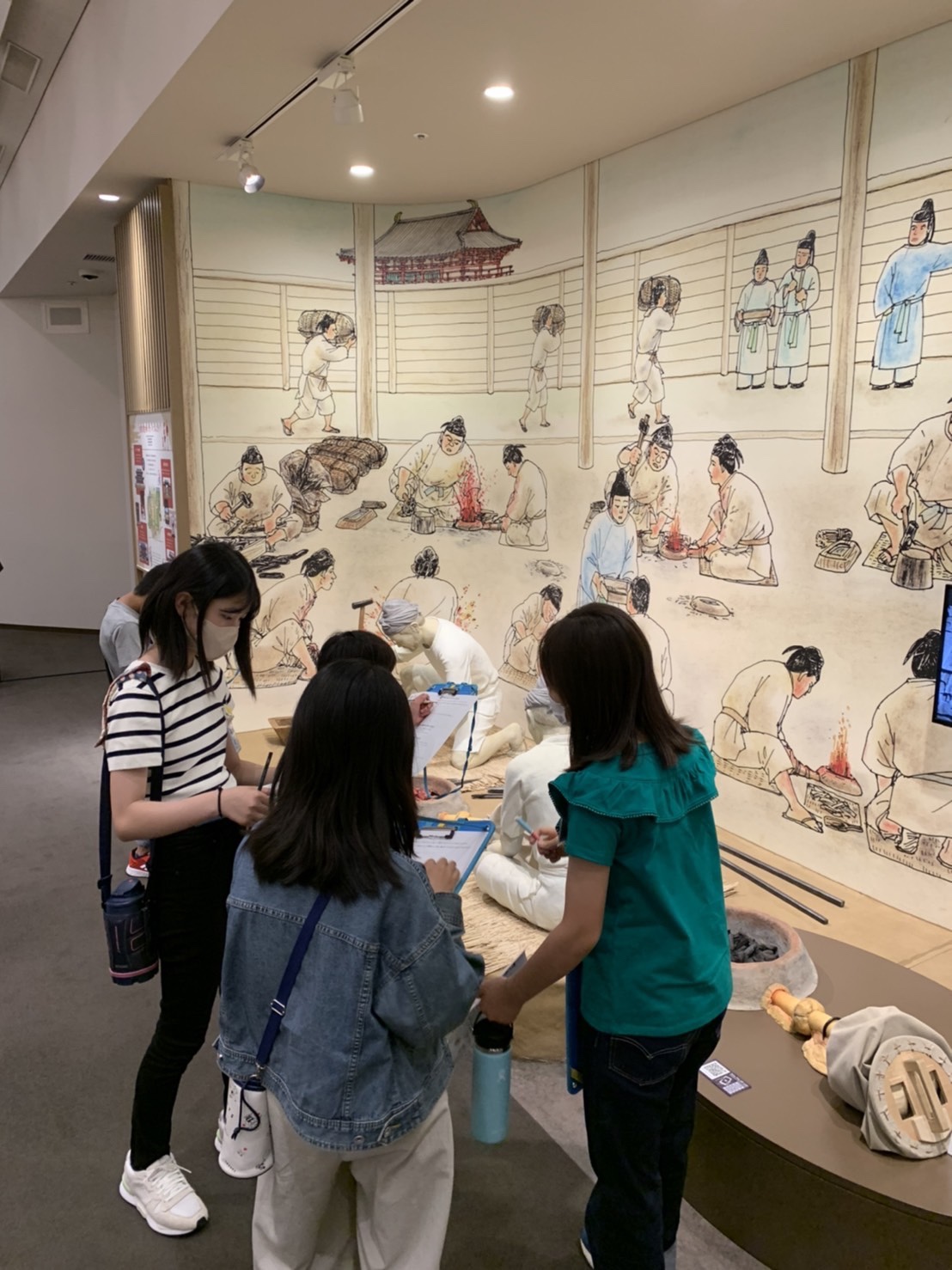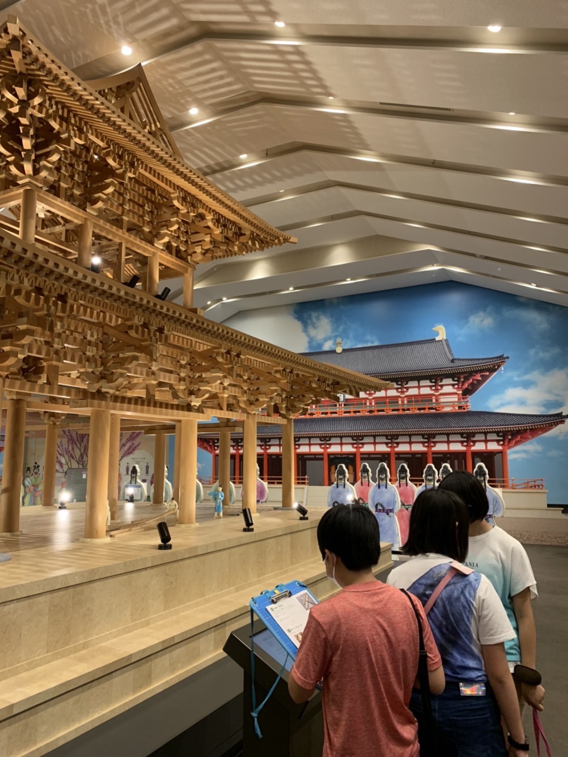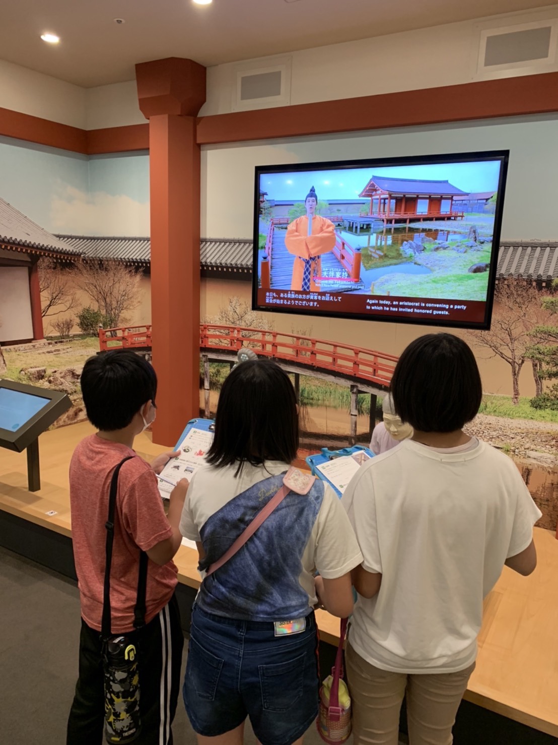 1つ目の活動場所の平城宮跡に到着し集合写真を撮影後、平城宮いざない館にてオリエンテーリングをします。教科書に出てくるようなものなどを見ることができます。