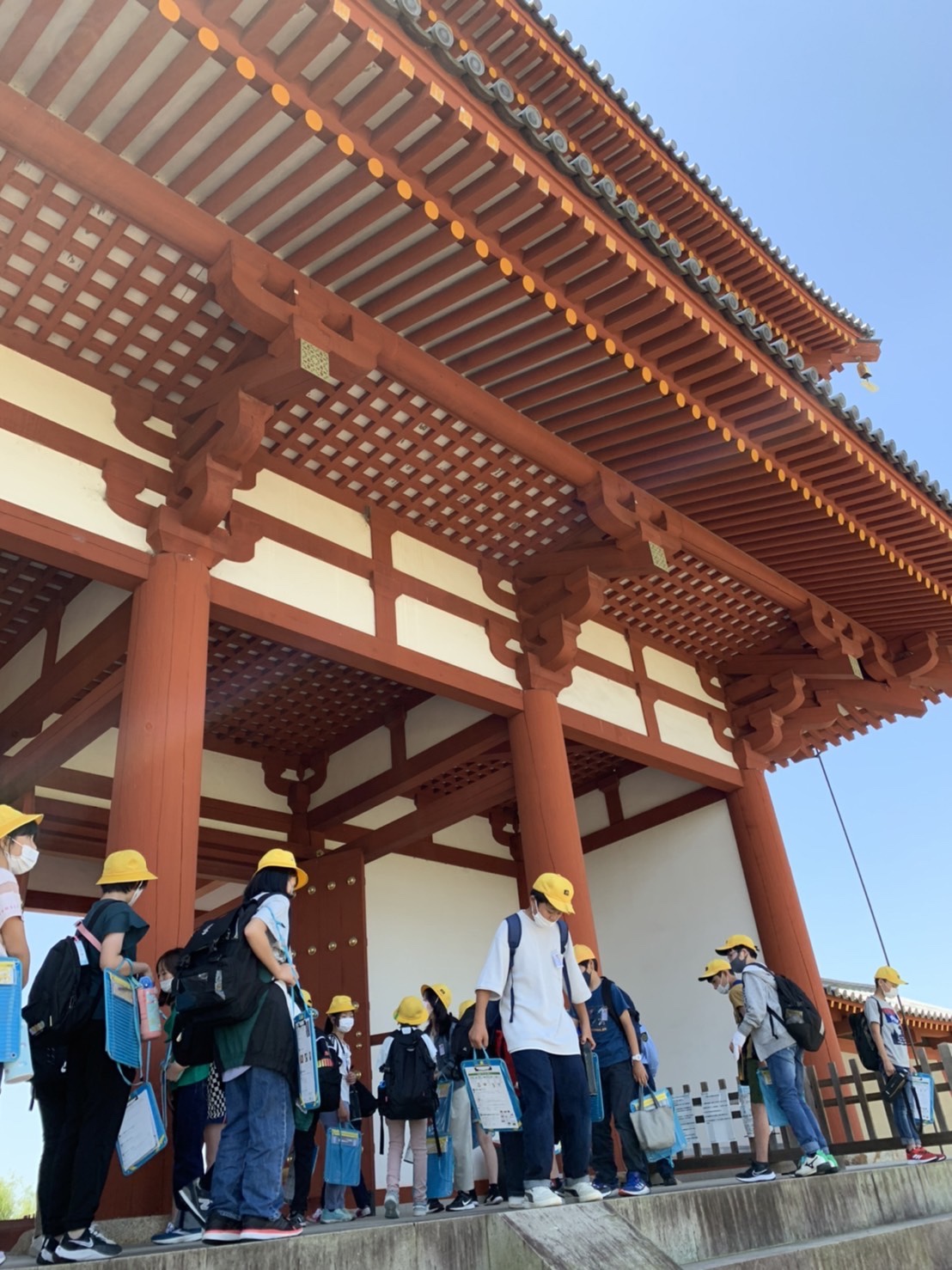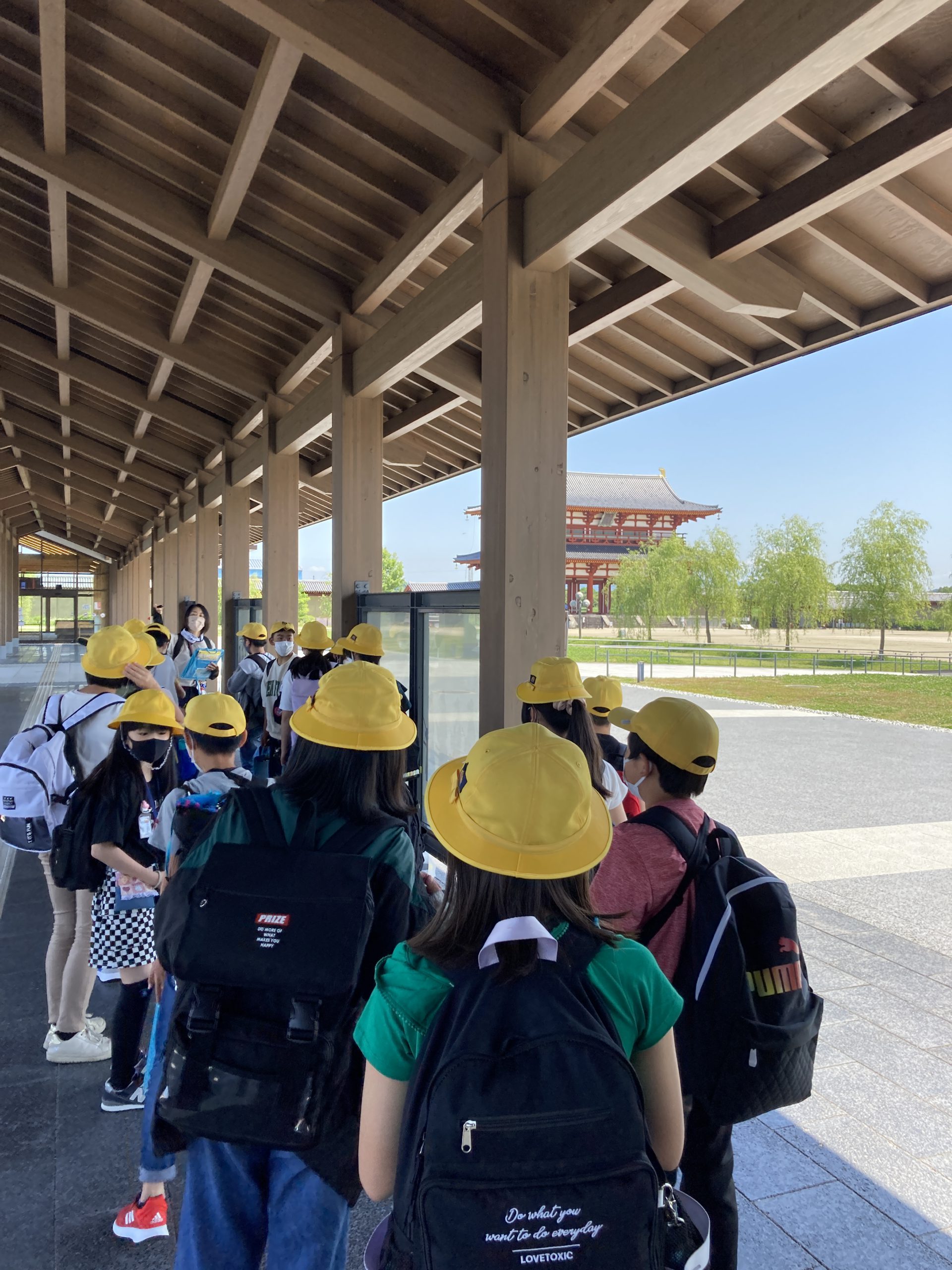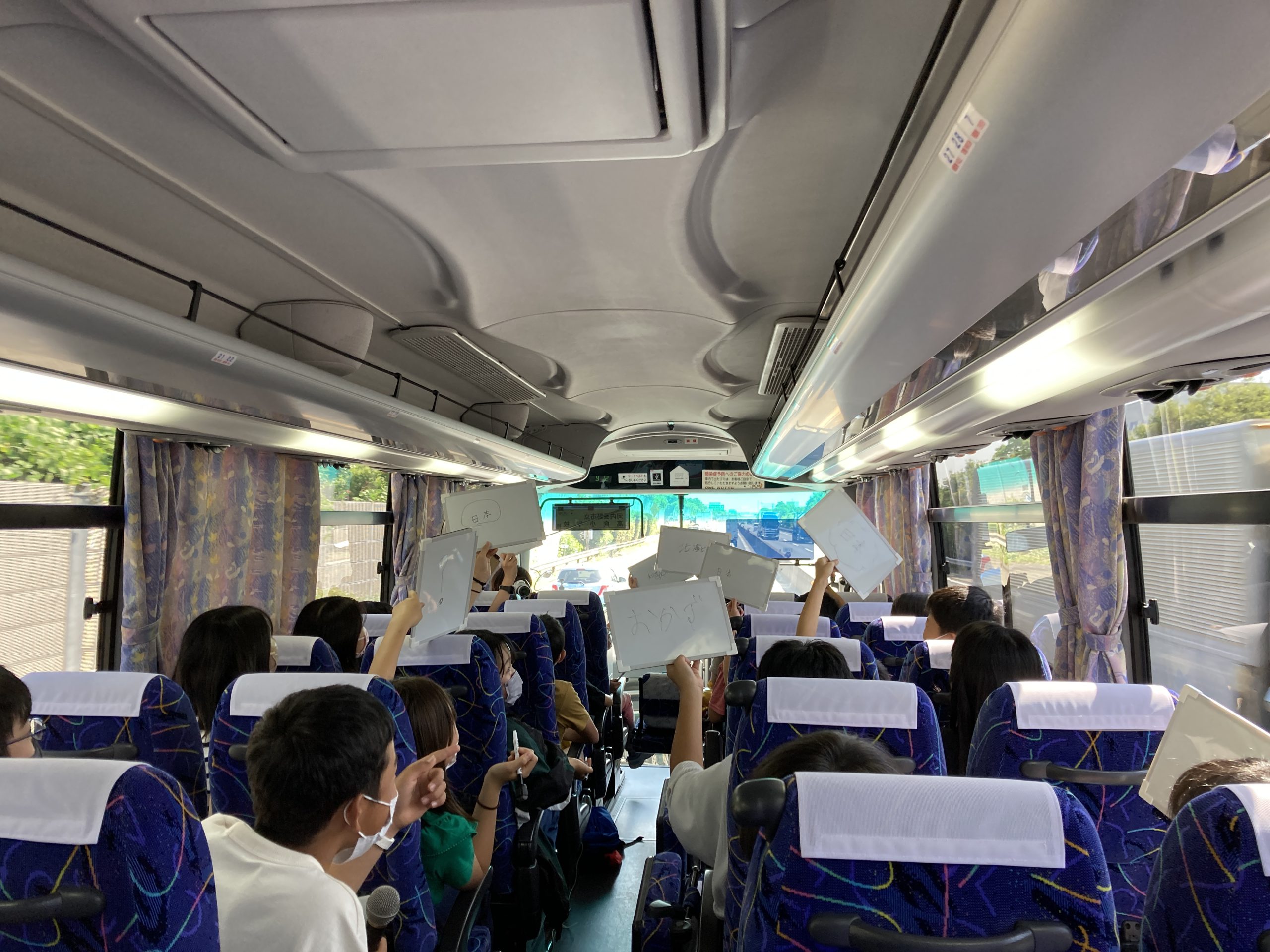 バスを使って奈良方面に遠足です。平城宮跡、東大寺へ行ってきます。バスの中ではコロナ対策(鳴り物、ホワイトボードなど)をしながらレクをして楽しんでいます。