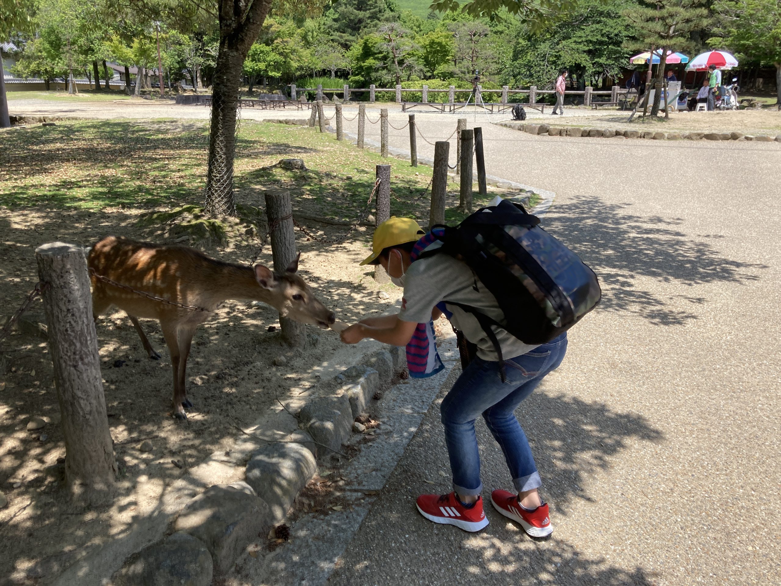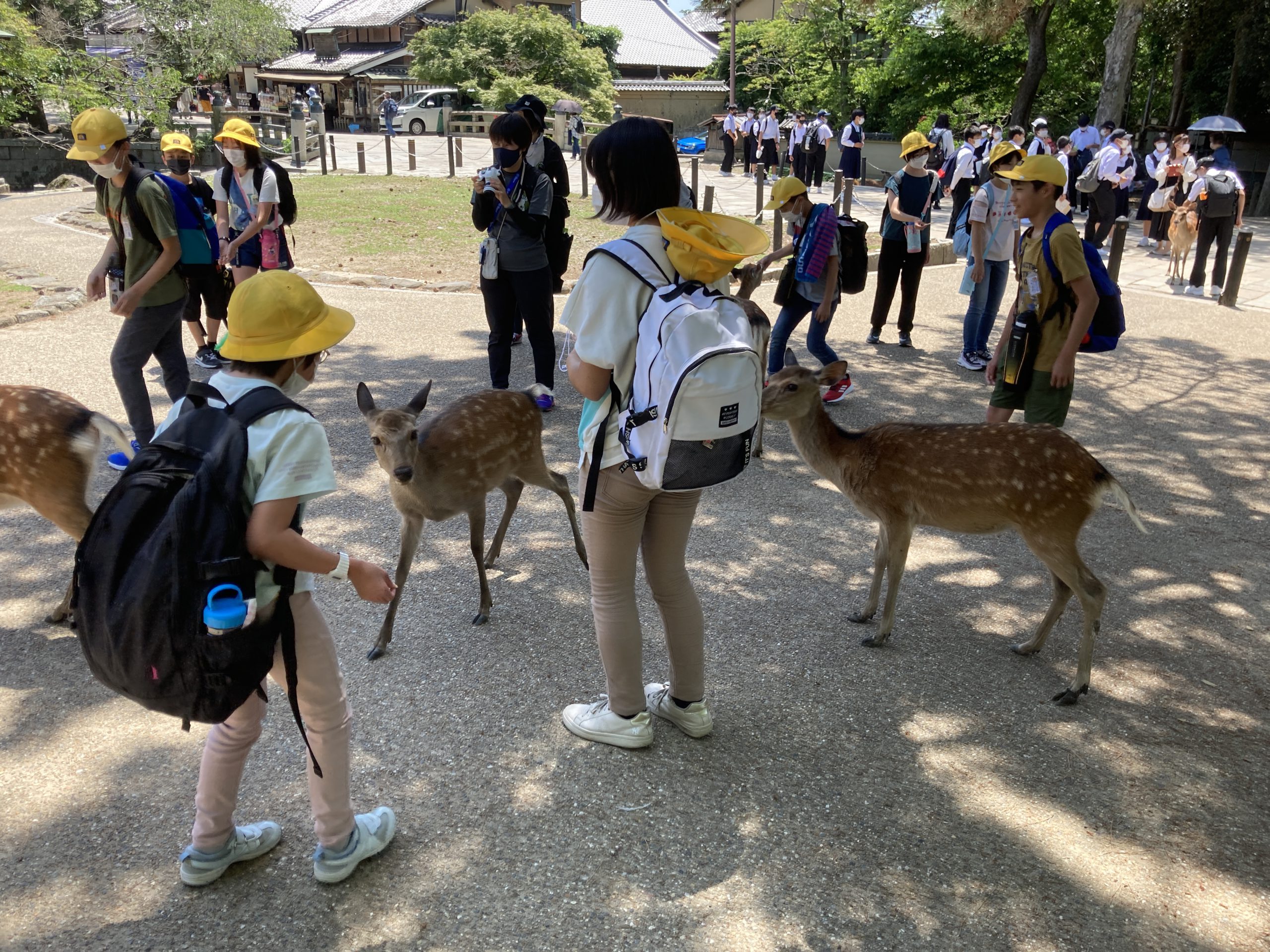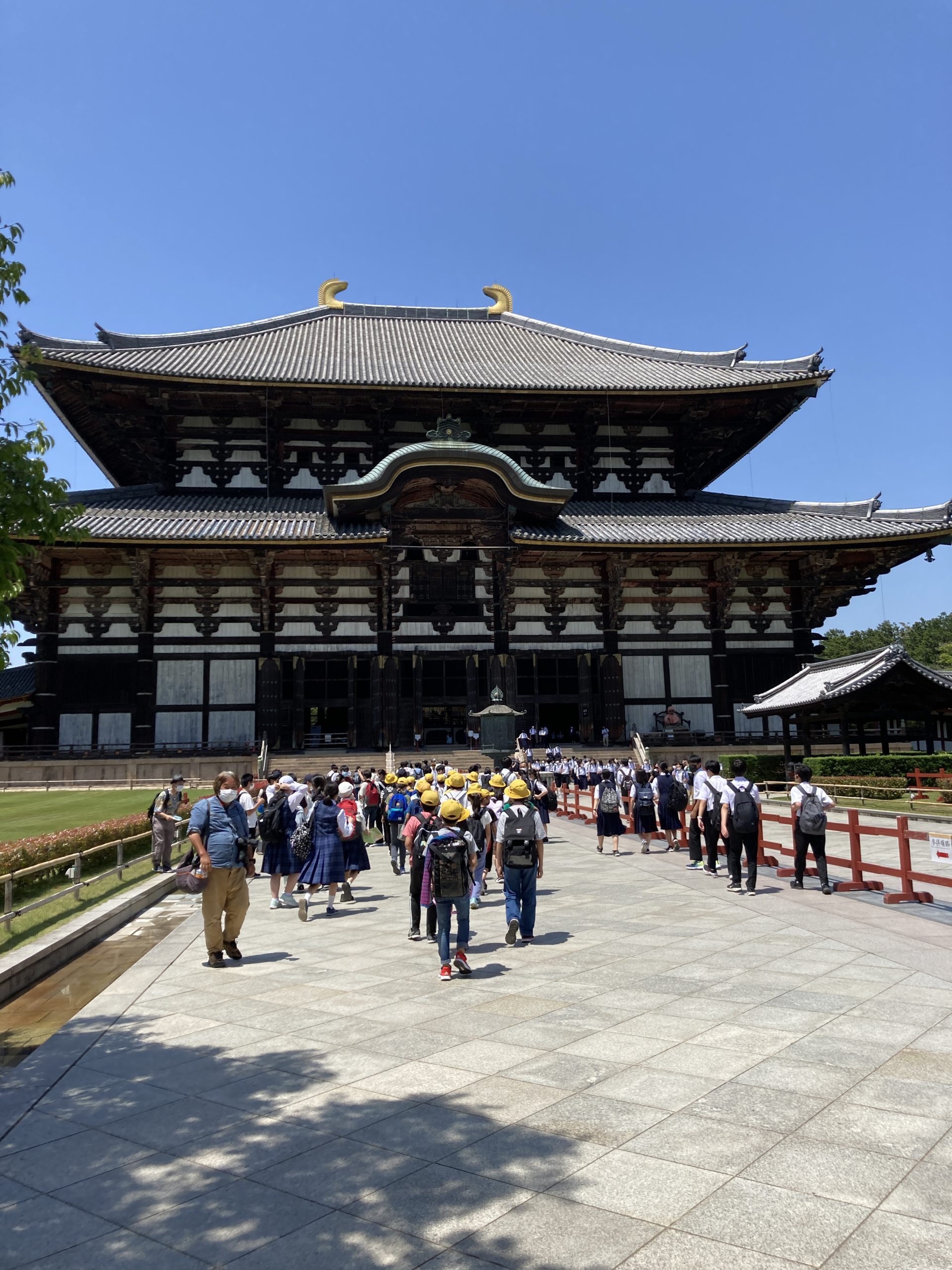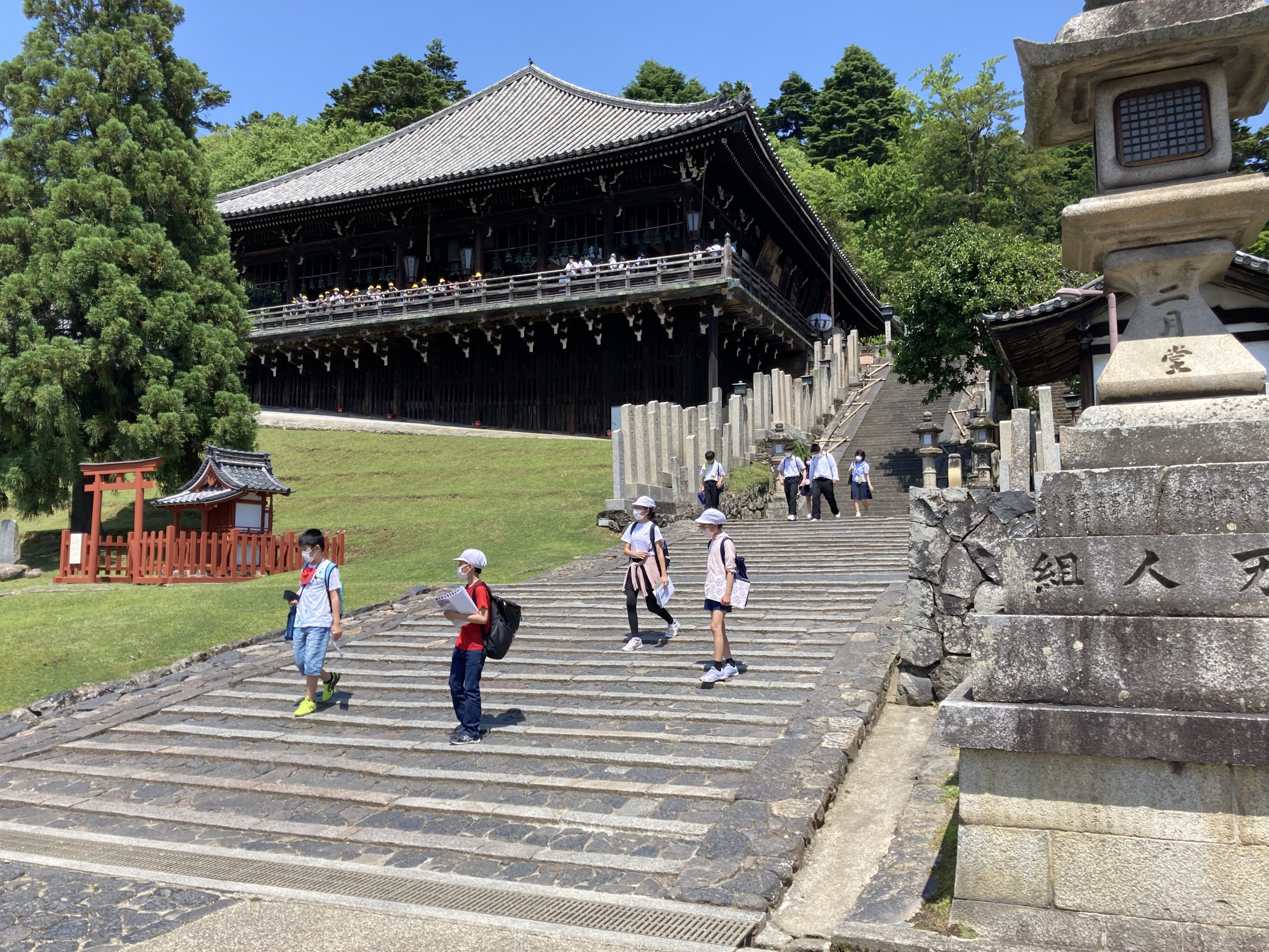 大仏を見学する前に春日野園地で昼食。木陰で食べることができたので、とても心地よかったです。昼食後、広大な園地で思いっきり遊びました。その後、大仏、二月堂を見学しました。